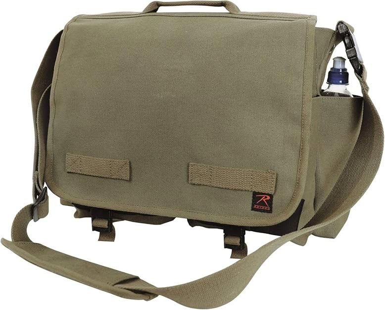 I originally got this bag for banging around the farm. It has decent conceal-carry accomadations. It can hold my laptop. It holds my coffee thermos, and it has enough pockets that the bits and pieces don’t rumble around. It’s from Rothco. I picked it up for under $40 off Amazon.