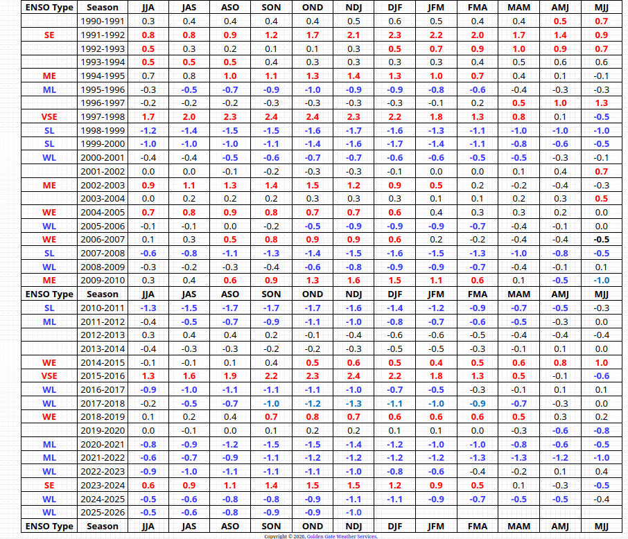 If you’re not up on ENSO, this is the name for what’s commonly called El-Nino and La Nina. If you don’t know about these, here’s a description: